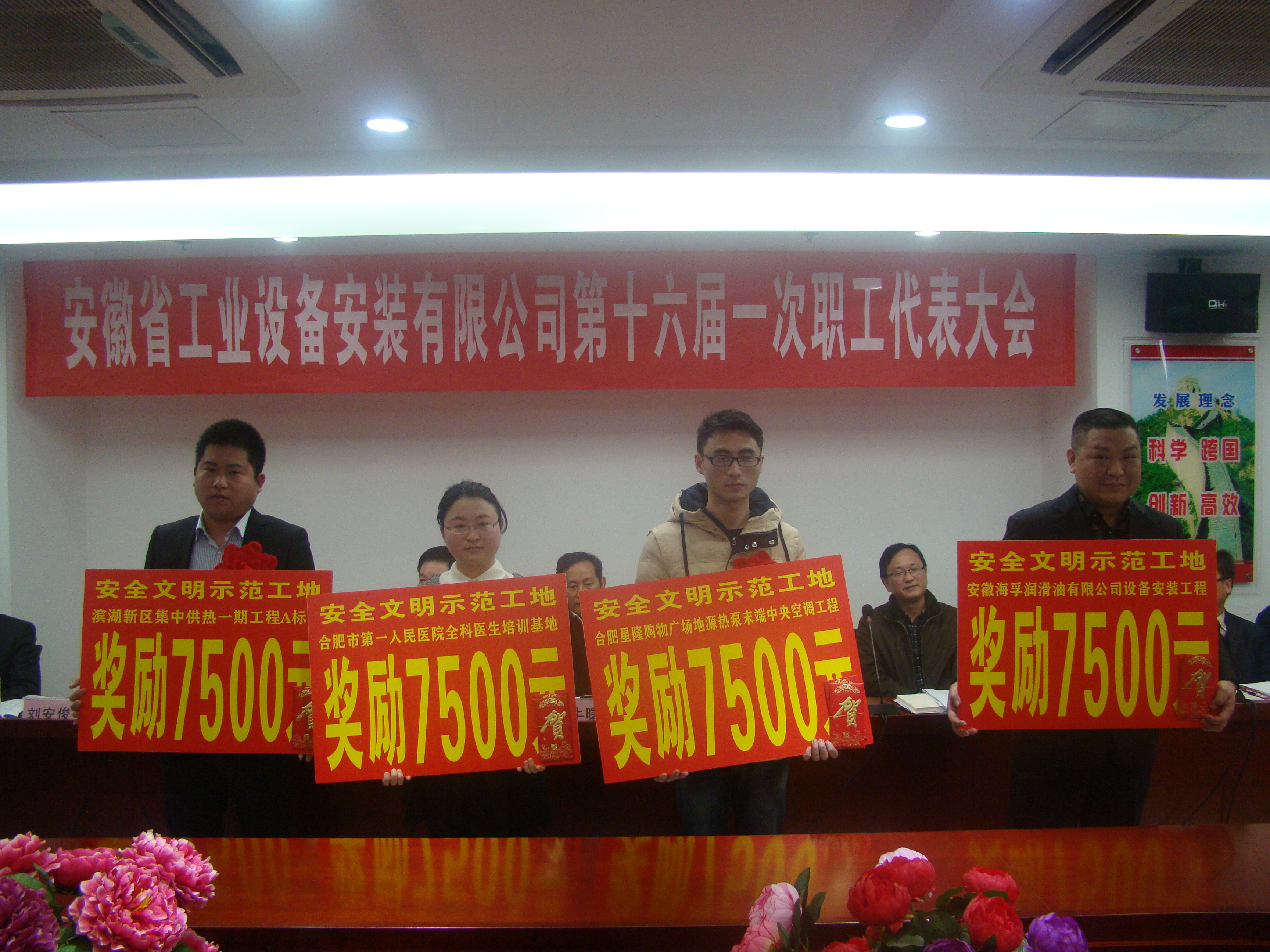 大會認真聽取并審議通過了公司董事長、總經理王軍邦同志所作的《解放思想、激發活力、夯實基礎、搶抓機遇,以改革創新精神全力推進企業發展新局面》的工作報告、《公司二○一四年度財務決算及二○一五年度財務預算的報告》、《二○一四年公司業務招待費使用的報告》、《分公司經營業績考核暫行辦法》、《公司機關考勤制度》等5個文件;表彰了2014年度公司先進集體和先進個人,獎勵了獲得集團及以上創優、科技進步等方面榮譽的先進集體;簽訂了分公司2015年度經營業績責任書和基層黨支部工作目標管理責任書。會上,職工代表還對公司領導班子成員進行了民主考核測評。