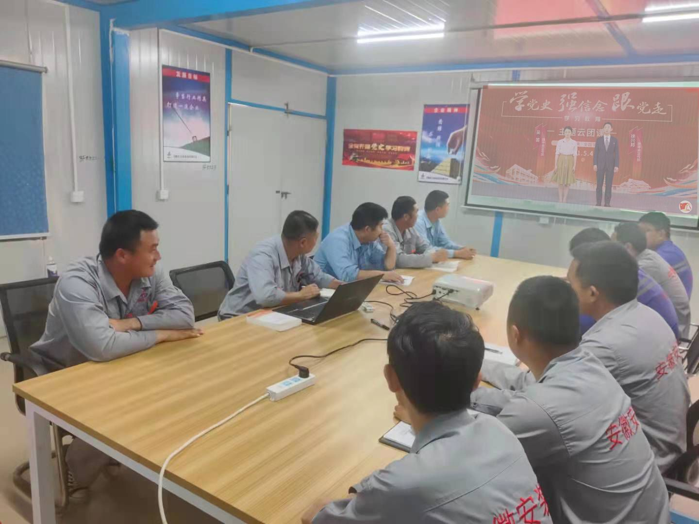 項目部積極響應公司黨史學習教育要求,促進黨史學習充分融入生產一線,營造出濃厚的“學黨史、促生產”的良好氛圍。5月1日,項目部開展了黨史學習教育交流會,會上項目部黨員皮軍同志帶領大家集中學習了《中國共產黨基本知識》并開展了黨史學習交流討論。5月4日,項目部組織團員青年通過線上觀看節(jié)目的方式觀看了由共青團中央、全國學聯(lián)舉辦的“學黨史、強信念、跟黨走”大型網(wǎng)絡直播主題云團課學習活動,在歌聲中感受激情燃燒的光輝歲月,在影像影視中見證時代的發(fā)展、歷史的變遷。