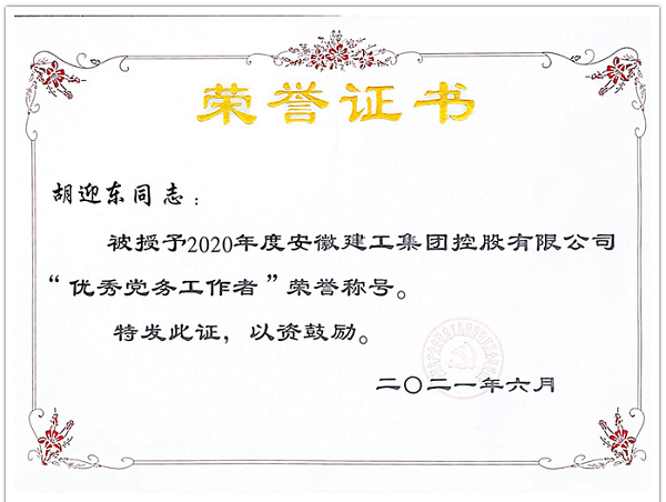 “榜樣的力量——安徽安裝公司先進(jìn)人物先進(jìn)事跡展播”(五)“建工集團(tuán)優(yōu)秀黨務(wù)工作者”胡迎東