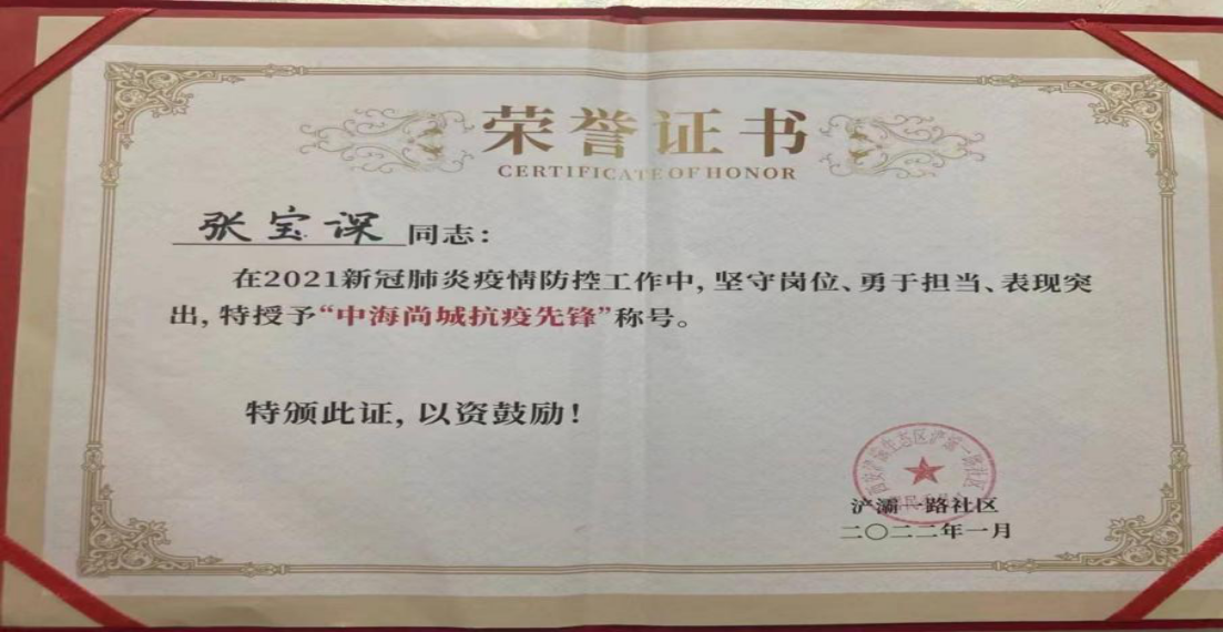 疫情無情,人間有愛。作為一名基層黨員,張寶深同志始終牢記黨員的初心與使命,在危難來臨時,他積極響應上級黨組織號召,主動請纓積極投身到“戰疫”大軍中,成為了社區疫情防控志愿者中的一員。張寶深同志深知社區疫情防控是防止病毒進入小區的第一道關卡,做好此項工作意義重大、責任重大。數日來,他所在的志愿者小隊組織居民排隊、維持現場秩序、登記檢測者信息,幫助老弱群體,積極引導群眾有序開展檢測,在他和志愿者隊友的努力下,小區內秩序良好,各項工作安全有序開展。在疫情較為嚴重的時期,他和隊友們還主動承擔了為封閉在小區的居民送菜送藥,物資消殺等基礎工作。數日來,他每天早出晚歸,穿上密不透風的防護服一站就是一天,面對簡陋的工作環境及瑣碎的工作程序,他沒有向困難低頭,而是始終保持著高度的責任心與耐心,積極應對各種突發情況,做好核酸采集及群眾的服務疏導工作,最終順利圓滿的完成了此次志愿者工作。