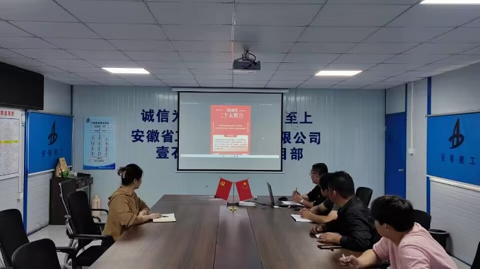 安徽安裝房建(裝飾)分公司壹石通項目部組織學習安徽共青團公眾號發表的關于黨的二十大的總結學習文件。