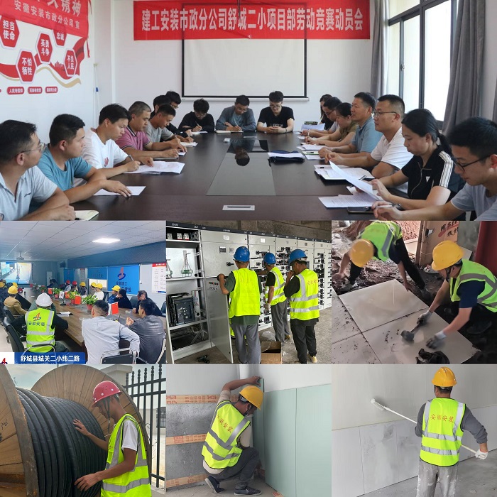 七月驕陽似火,工程也進入了最后決戰的關鍵時刻。為奏響夏日大干“進行曲”,吹響建設攻堅“沖鋒號”,舒城二小項目部圍繞外強電專業分包工程適時開展了“當好主人翁 建功大發展”大干20天主題勞動競賽活動。為確保按時完成競賽目標任務,項目部參建人員統一思想認識,堅定信心、攻堅克難、日夜奮戰,抓細抓實施工過程管控,按照競賽方案設立的節點目標,細化工作任務,保證人、財、物等各項資源配置,在保證工程安全質量的前提下,爭分奪秒地加快項目建設進度。當施工進入炎炎烈日當空、高溫酷暑難耐的盛夏時節,為確保施工不間斷,項目部管理人員和一線工人始終堅守工作崗位、不下火線,他們緊盯各工序時間節點和目標任務,延長早間、夜間作業時間,按進度找差距、補短板,確保各項節點目標按時按質完成;同時項目部做好現場防暑降溫各項措施,為一線員工們送去夏日“清涼”和加班生活物資,確保安全施工不松懈、后勤生活有保障。在勞動競賽過程中,項目部科學組織、合理分工、搶抓進度,全體干部職工勇于擔當作為,大干快上,創造了一個又一個“不可能”,7月20日前完成全部電纜敷設,7月30日前完成環網柜安裝和電力系統調試,如期為項目送上了電,圓滿完成了競賽目標。