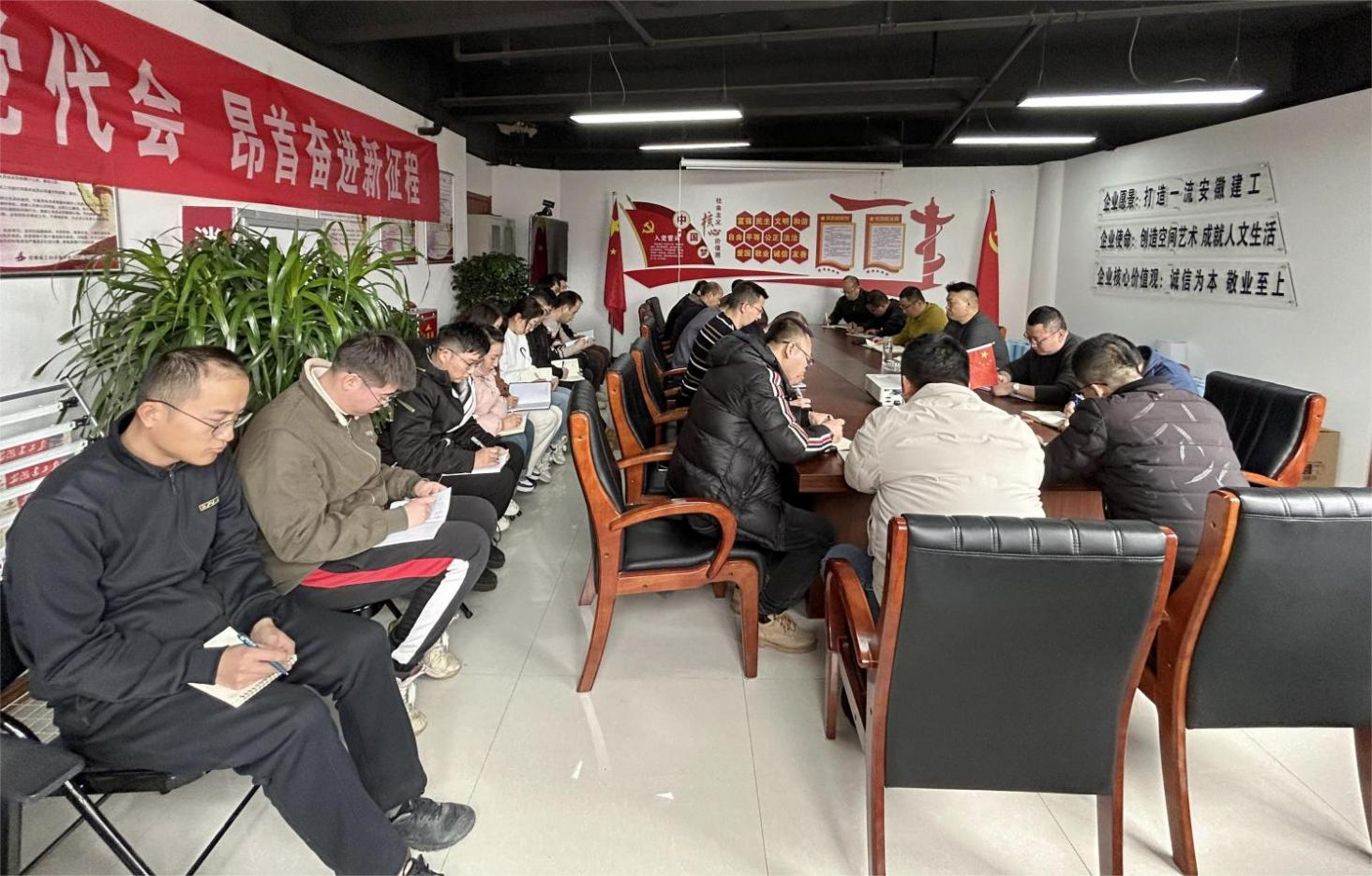 聽取匯報后,王軍首先向與會人員宣講了建工控股三屆一次職代會和公司十七屆四次職代會精神,并結合分公司實際對2024年的工作提出了五點要求:一要提高政治站位,堅決把思想和行動統一到兩級職代會精神上來,抓好分公司在建項目復工復產工作,切實落實好各項措施,以“開局就是決戰、起步就要沖刺”的狀態,為完成全年各項任務開好局、起好步。二要強化項目管理,切實降本增效。進一步提升分公司項目精細化管理,推進項目經理負責制,以項目經理為核心抓項目、保安全、促生產、控成本、防風險、提效益、樹品牌,增強企業核心競爭力,全面提升項目經濟效益。三要優化體制改革,強化人才培養。推深做實綜合考核機制,堅持用業績說話,實施競爭上崗,以“忠專實、勤正廉”為導向,用好人、用對人,培養一批綜合素質強、專業技術扎實、政治覺悟高的能征善戰、敢于擔當、樂于奉獻的人才隊伍,為分公司高質量發展儲備力量。四要以更堅定的信念抓黨建。充分發揮黨支部戰斗堡壘和黨員先鋒模范作用,廣大黨員要帶頭履職擔當、沖鋒在前、樹立榜樣,始終牢記宗旨,不忘初心,讓黨旗在一線高高飄揚。五是鼓勵分公司員工加強學習,不斷提升專業素養和工作技能,號召全體職工要團結一心、鼓足干勁,以良好的精神狀態、昂揚的斗志,直面前進中的困難和挑戰,篤行實干,迎難而上,為完成全年各項目標任務而努力拼搏!