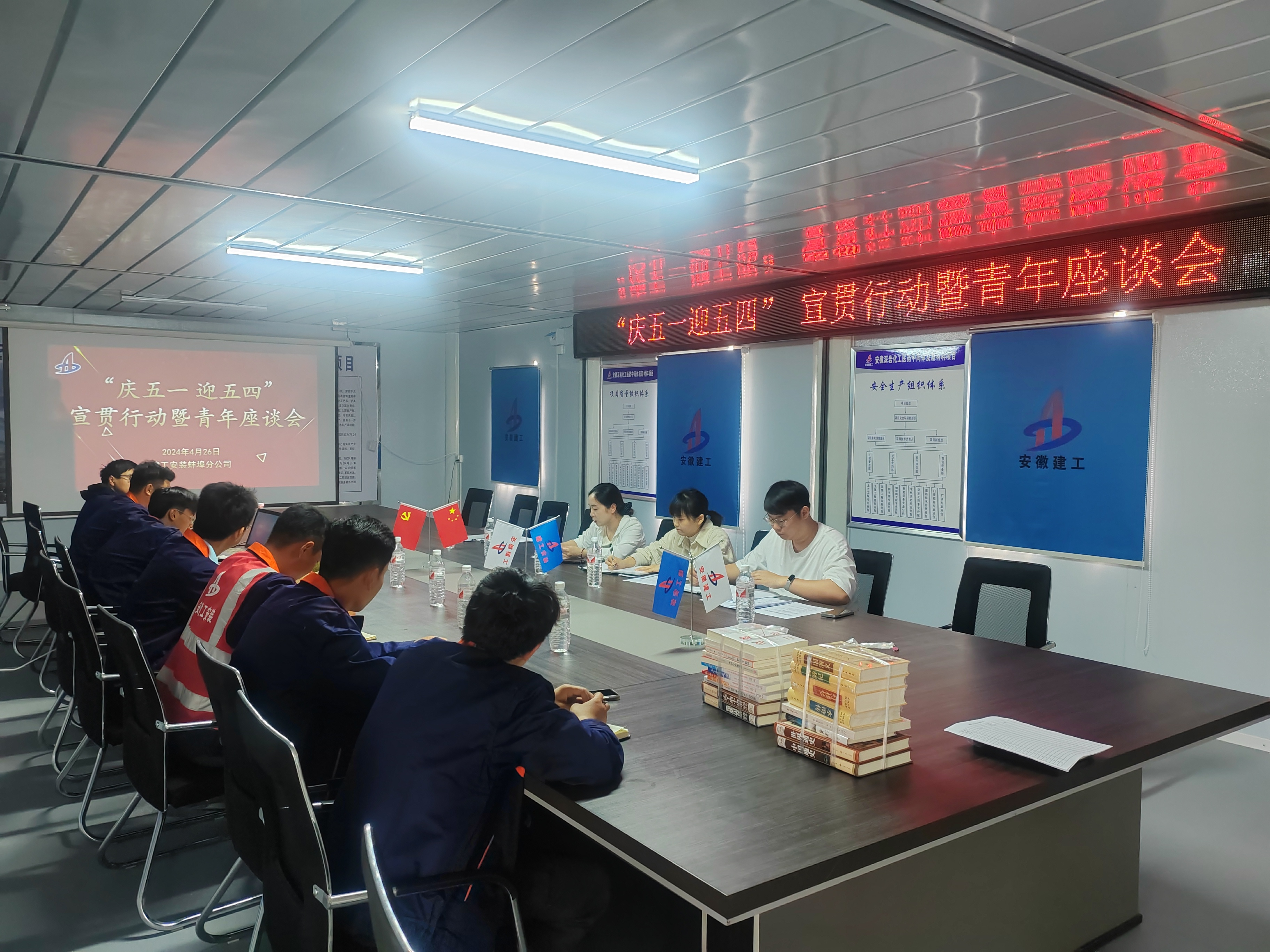 4月26日上午,建工安裝蚌埠分公司黨工團組織赴宿州深巖化工項目部開展“慶五一·迎五四”宣貫行動暨青年座談會。