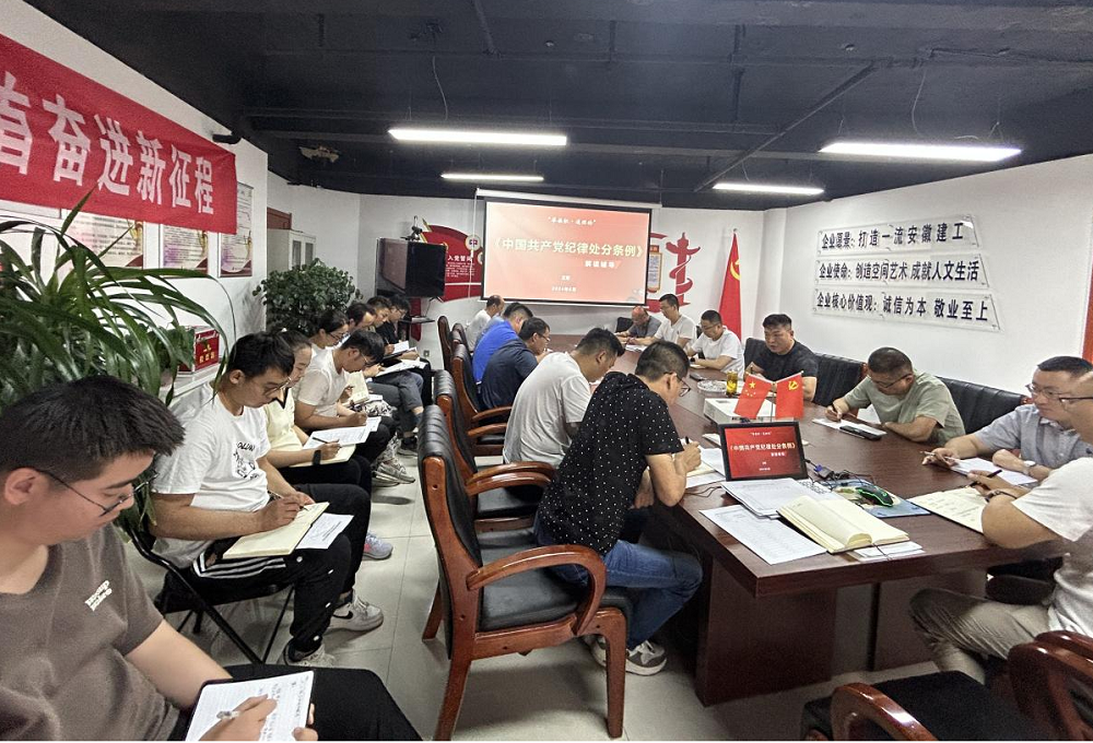 王軍緊扣學習貫徹《中國共產黨紀律處分條例》這條主線,結合分公司實際為大家講授了一堂生動的紀律黨課。同時對分公司上半年工作情況做了點評,深刻剖析了當前存在的問題并提出解決措施,在總結講話中對分公司提出五點意見:一是要深刻理解黨紀學習教育的重大意義,全體黨員要提高政治站位、聚焦重點、學用結合,把《條例》貫穿到工作生活中,不斷增強紀律意識,加強自我約束,將黨紀學習教育成果轉化為推動企業發展的強大動力。二是全體成員要忠誠于企業、感恩于企業。珍惜企業賦予大家的平臺和發展空間,以忠誠和感恩之心與企業共同成長,為企業的高質量發展貢獻自己的力量。三是全體成員要增強危機意識,堅持不懈的學習,增強本領,樹立正確的目標,不斷提高自身綜合素質和實現自我價值。四是要堅守底線思維,強化風險管控,扎扎實實做好項目管理工作。壓緊壓實工作責任,抓實抓細生產、質量、成本、資金及人身安全等各項工作,堅決防范重大風險發生,牢牢守住安全生產紅線底線,切實營造安全穩定環境,為公司的可持續發展保駕護航。五是要團結合作,分公司上下要團結一心、鼓足干勁,凝心聚力、真抓實干,緊緊圍繞中心工作,認真履職盡責,主動擔當作為,為圓滿完成全年各項目標任務而不懈努力。