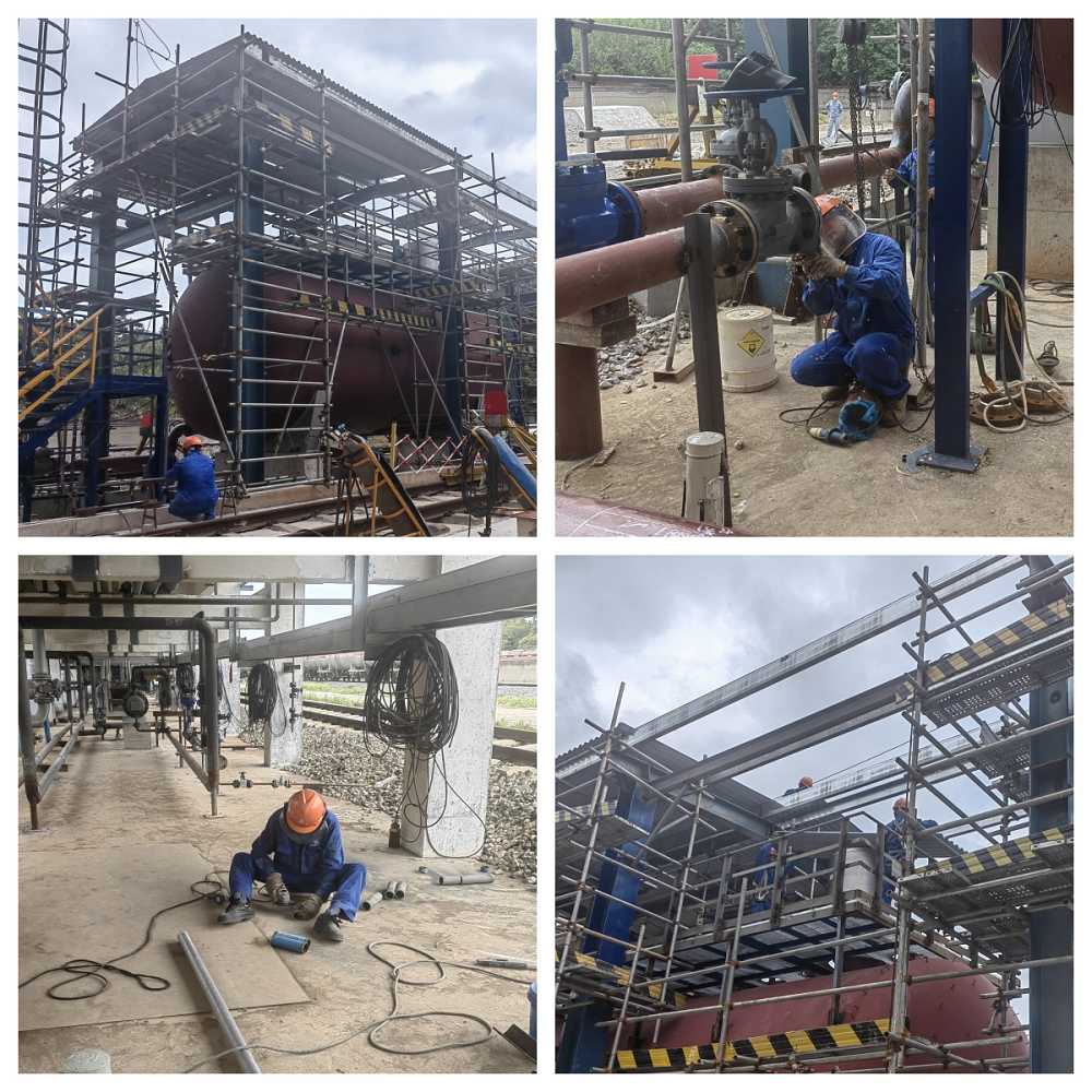 安慶石化新增鐵路接卸純苯設(shè)施項目正在穩(wěn)步推進。目前,已拆除舊鶴管6臺并安裝新鶴管6臺,緩沖罐、污油罐、苯卸車泵也已安裝完畢,現(xiàn)進行泵棚鋼結(jié)構(gòu)屋面彩鋼瓦和設(shè)備安裝工作。該項目總體進度達80%,其中鐵路施工已結(jié)束并通過驗收交于業(yè)主使用,剩余電氣設(shè)備、工藝管線等施工計劃于10月完成項目中交。