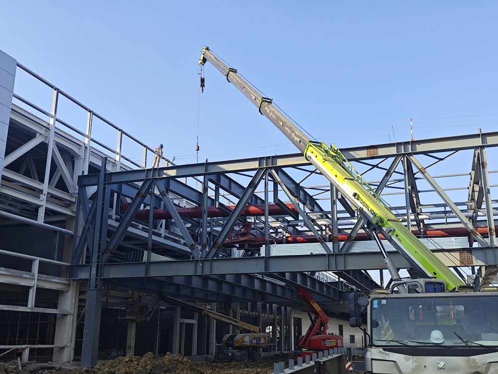 雖已立冬,天氣轉涼,但合肥新橋智能制造產業園一階段一標項目部戰鼓依然在響,施工現場依舊是一片奮戰猶酣的火熱場面。吊車揮舞著“長臂”、升降車起起落落、施工車來回穿梭、工人們忙忙碌碌,敲擊聲聲聲入耳……一切都在為確保競賽節點努力拼搏著。