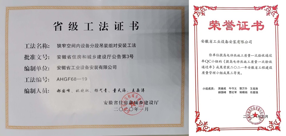 在繁忙的工作之余,姚曉馳對專業(yè)知識(shí)的探索與熱愛從未有片刻停歇。他仿若一位求知若渴的行者,積極主動(dòng)地在知識(shí)的海洋中破浪前行,持續(xù)拓寬并深化自身的知識(shí)體系。他參與研發(fā)的《狹窄空間內(nèi)設(shè)備分段吊裝組對安裝工法》成功榮獲安徽省住房和城鄉(xiāng)建設(shè)廳頒發(fā)的省級(jí)工法稱號(hào),《提高電伴熱施工質(zhì)量一次驗(yàn)收通過率》也榮獲了安徽省工程建設(shè)質(zhì)量管理小組成果三等獎(jiǎng)。
