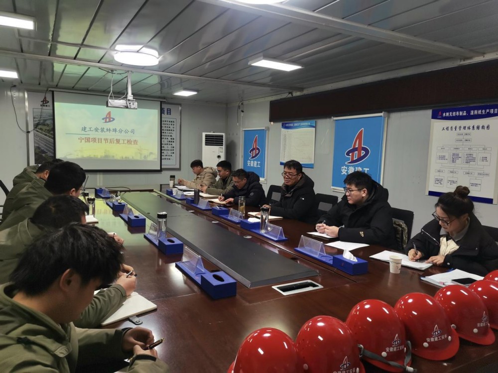2025年2月11日,分公司黨支部書記、經(jīng)理趙銘亮一行赴寧國水刺無紡布制品、濕廁紙生產(chǎn)項(xiàng)目開展春節(jié)后復(fù)工檢查,并召開現(xiàn)場工作會(huì)議,對項(xiàng)目工期進(jìn)度、質(zhì)量管控、成本管控、人才培養(yǎng)等方面進(jìn)行安排部署,為項(xiàng)目新一年建設(shè)開好局、起好步指明方向。分公司副經(jīng)理張斌及各部門負(fù)責(zé)人陪同檢查。