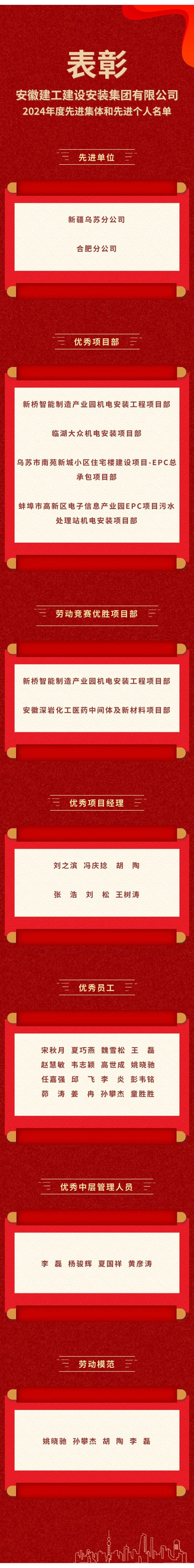 2月24日至26日,安徽建工建設安裝集團有限公司十七屆五次職工大會暨2025年工作會議在滁州召開。會議期間,對2024年度先進集體和個人進行了表彰,激勵全體員工向先進看齊、向榜樣學習,為公司發展貢獻更大力量。公司領導班子出席會議并為受表彰集體、個人頒獎,部分受表彰先進單位和個人代表結合工作實際作了交流發言。