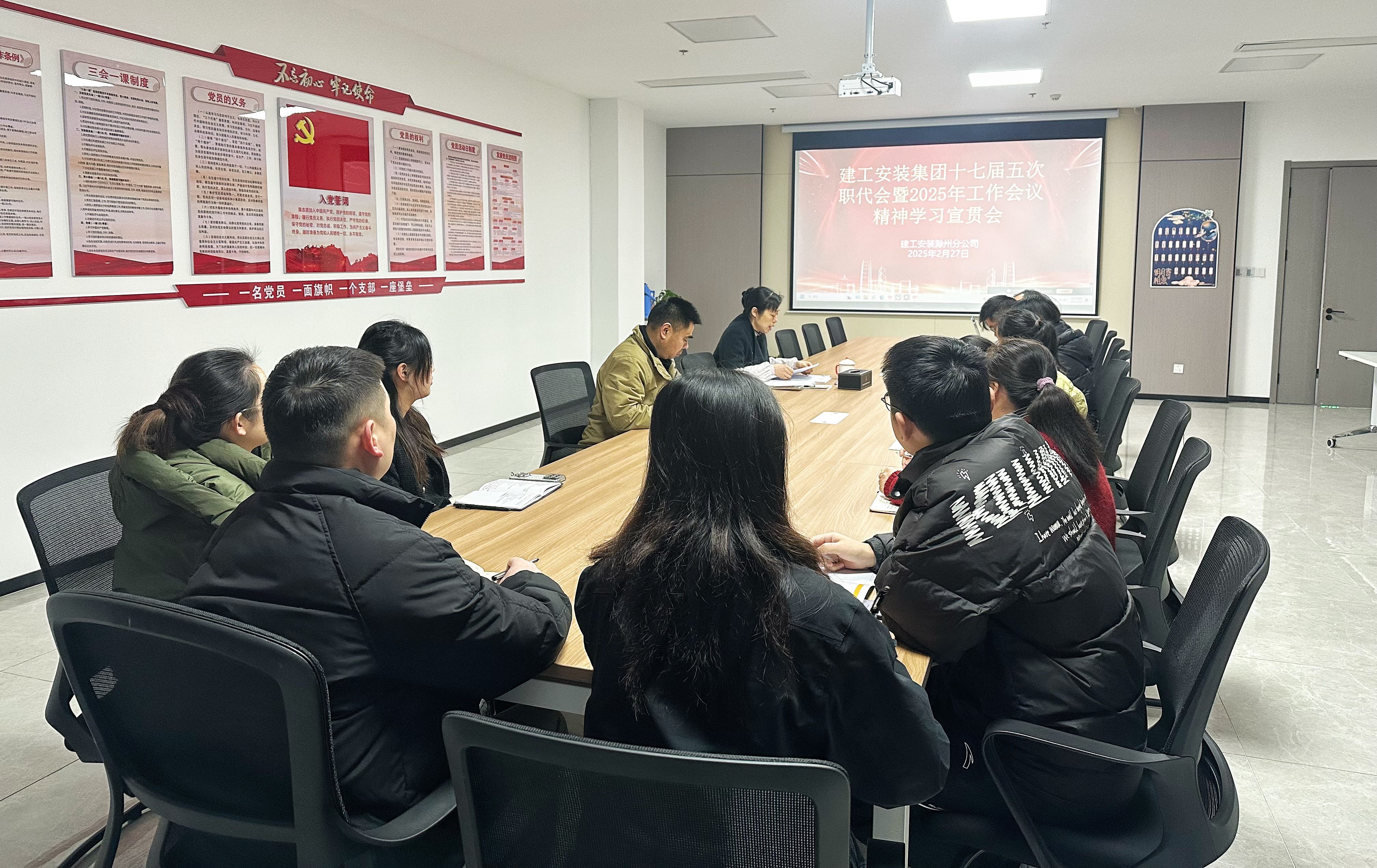 2月27日上午,建工安裝滁州分公司分別在機(jī)關(guān)和項目一線同步召開建工安裝十七屆五次職代會暨2025年工作會議精神專題學(xué)習(xí)宣貫會。分公司領(lǐng)導(dǎo)班子成員及部分職工代表、項目經(jīng)理作為宣貫人主持會議。