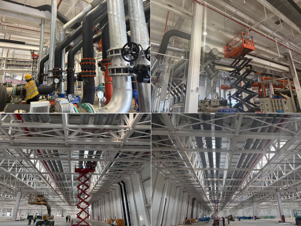 自一季度以來(lái),項(xiàng)目部以“2025開(kāi)局即決戰(zhàn)”的昂揚(yáng)斗志,迅速掀起“大干快上”施工熱潮。對(duì)各車間、各系統(tǒng)剩余工程量展開(kāi)全面梳理統(tǒng)計(jì),同時(shí)針對(duì)剩余工程量堅(jiān)持每日召開(kāi)專題會(huì),以倒排計(jì)劃為“發(fā)令槍”,對(duì)照時(shí)間節(jié)點(diǎn)要求各班組加班加點(diǎn)、不折不扣完成。截至發(fā)稿,車間一大面積施工基本完成,形象進(jìn)度完成約96%;車間二形象進(jìn)度完成約90%;車間四形象進(jìn)度完成約92%;站房一各設(shè)備管道基本安裝完成,正在調(diào)試中,形象進(jìn)度完成約90%。目前,各車間工藝生產(chǎn)均已進(jìn)場(chǎng),燃?xì)忮仩t點(diǎn)火成功、空壓站完成試運(yùn)行、工藝24h冷凍水、恒溫恒濕空調(diào)均已投入使用;各車間工藝區(qū)送電已到位、供水完成。