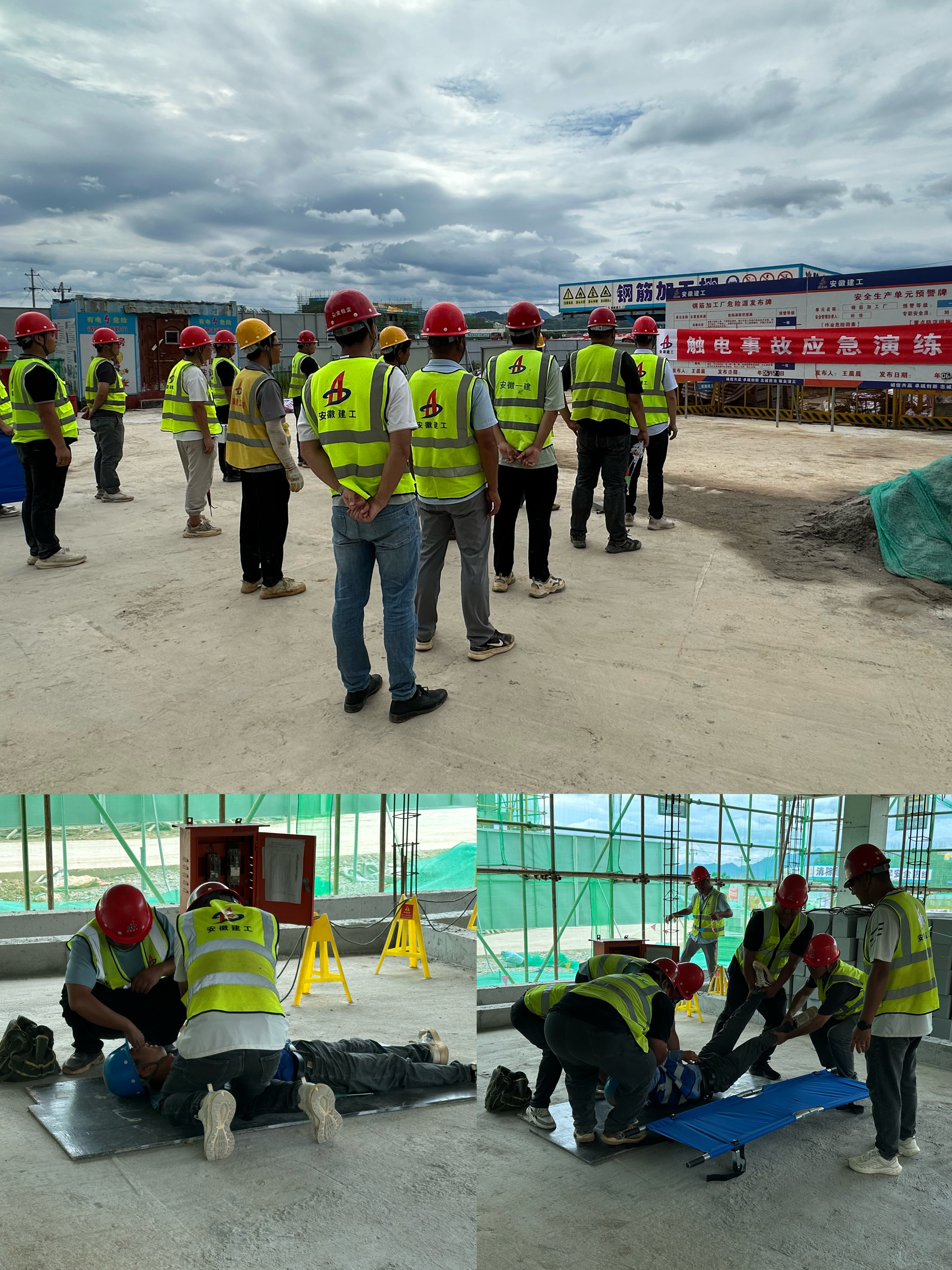 6月24日下午,建工安裝公路公司在明光科順項目現場成功組織開展了觸電事故應急演練。本次演練旨在貫徹落實安全生產要求,檢驗應急預案的可行性,提升項目人員應對突發事件的處置能力。