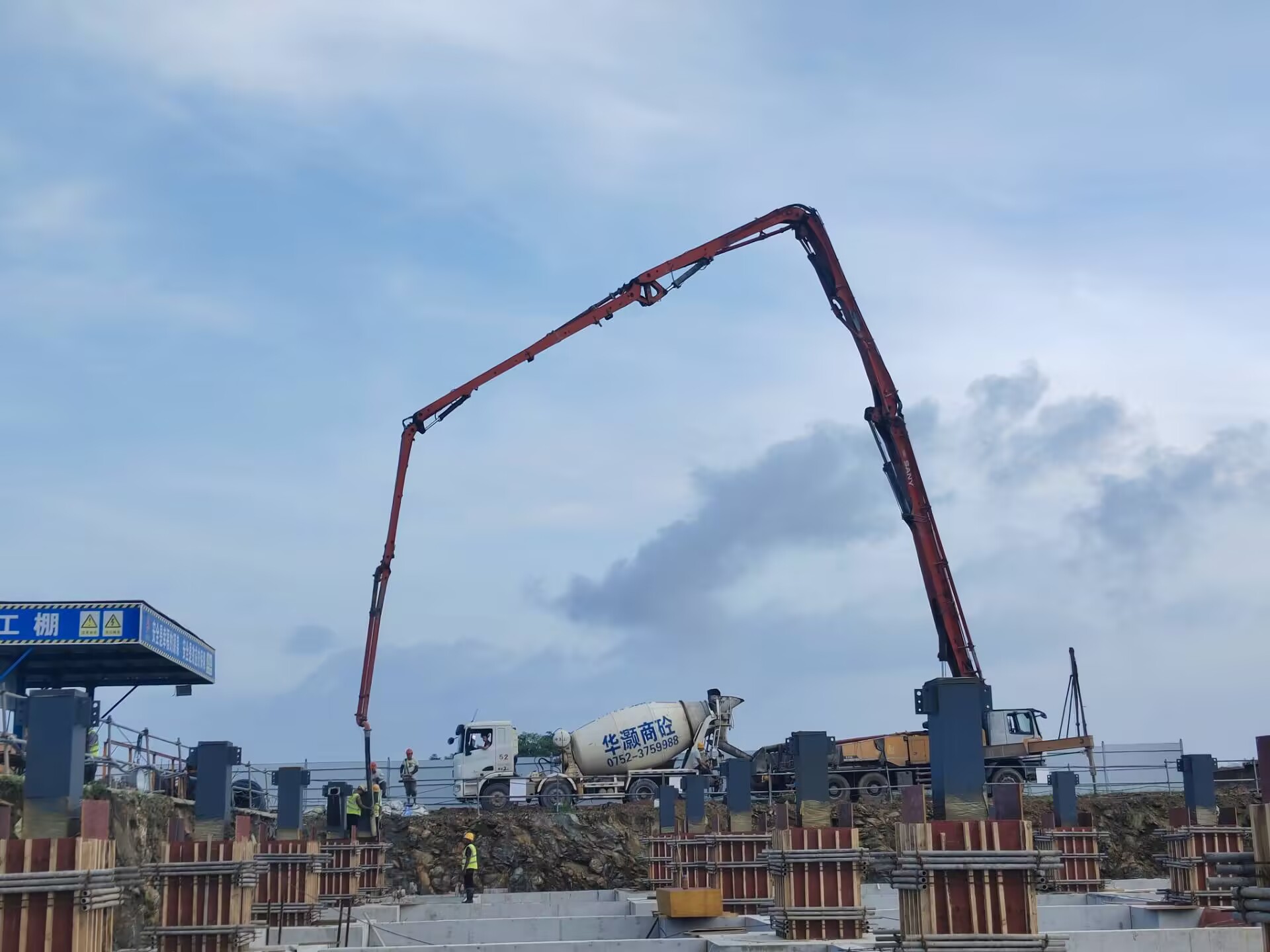 走進項目施工現場,運輸的車輛往來穿梭,數十名工人分布在各作業面,綁扎鋼筋、支設模板、澆筑混凝土,到處都是忙碌有序的奮斗景象。為確保三季度節點目標達成,項目部早早制定了詳細的攻堅方案,將施工任務分解到周、落實到人,明確獎懲機制,激發全員斗志。